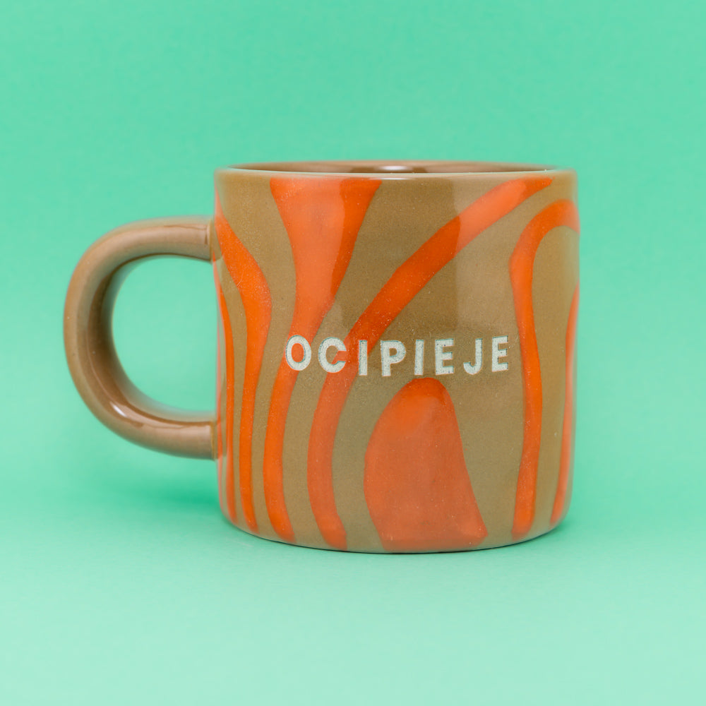 Klasyczna forma o miękkich liniach i wygodnym uchu. Malowany ręcznie pomarańczowy wzór tworzy swobodny, organiczny rysunek, który nadaje kubkowi lekki, nordycki charakter. Delikatne różnice w układzie wzoru sprawiają, że każdy egzemplarz wygląda trochę inaczej.