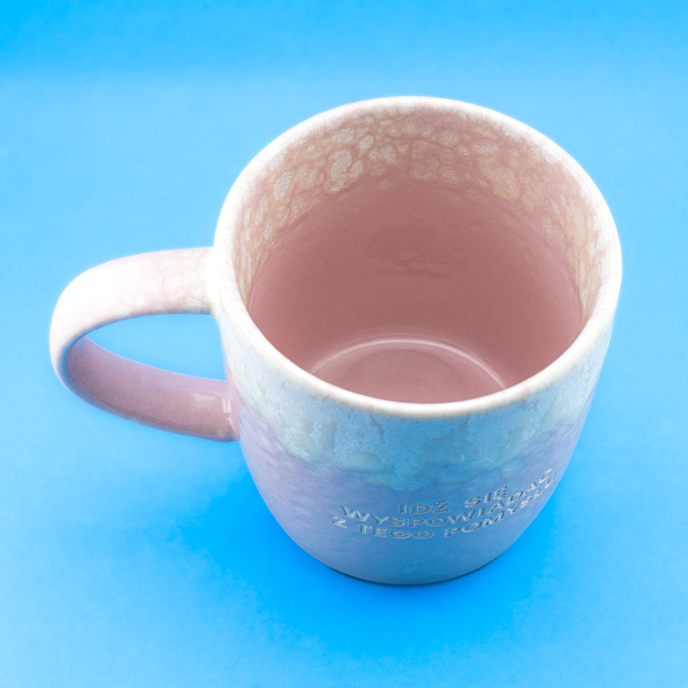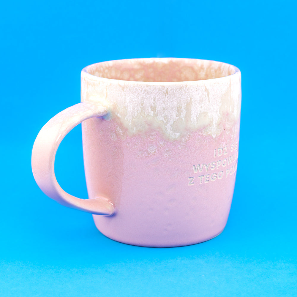 Klasyczna, zaokrąglona forma z wygodnym uchem i miękkimi liniami. Delikatne, „spływające” wykończenie w odcieniach różu i kremu nadaje kubkowi subtelny, spokojny wyraz. Naturalne przejścia kolorów sprawiają, że każdy egzemplarz wygląda nieco inaczej.