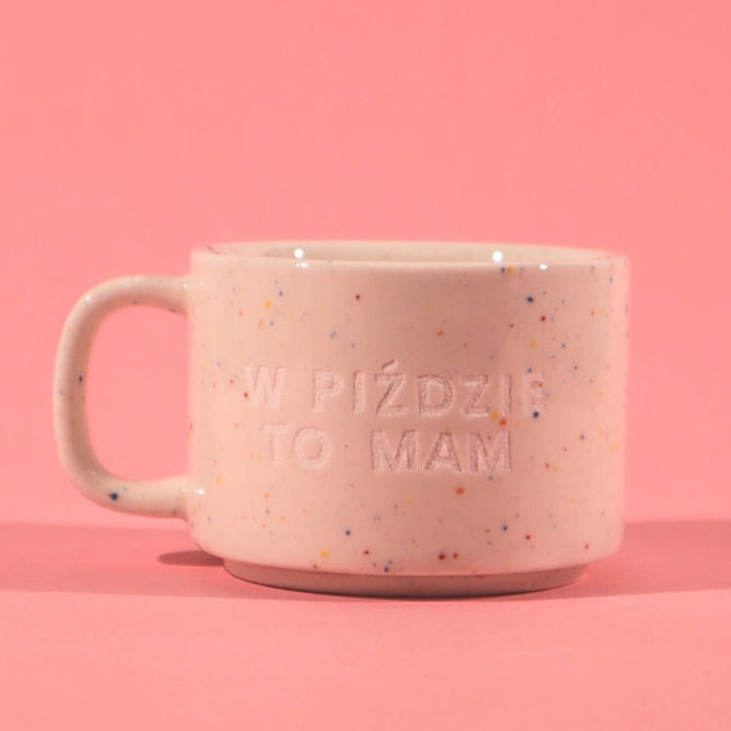 Delikatny z wyglądu, brutalnie szczery w przekazie. Kubek „W PIŹDZIE TO MAM” to definicja obojętności – wygląda spokojnie, ale mówi głośniej niż niejeden krzyk.