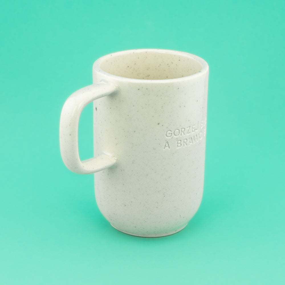 Każdy kubek na żywo może mieć minimalnie inaczej ułożony tekst i odcień niż na zdjęciach (zależy od światła i Twojego ekranu). Ale spokojnie – każdy wygląda zajebiście.