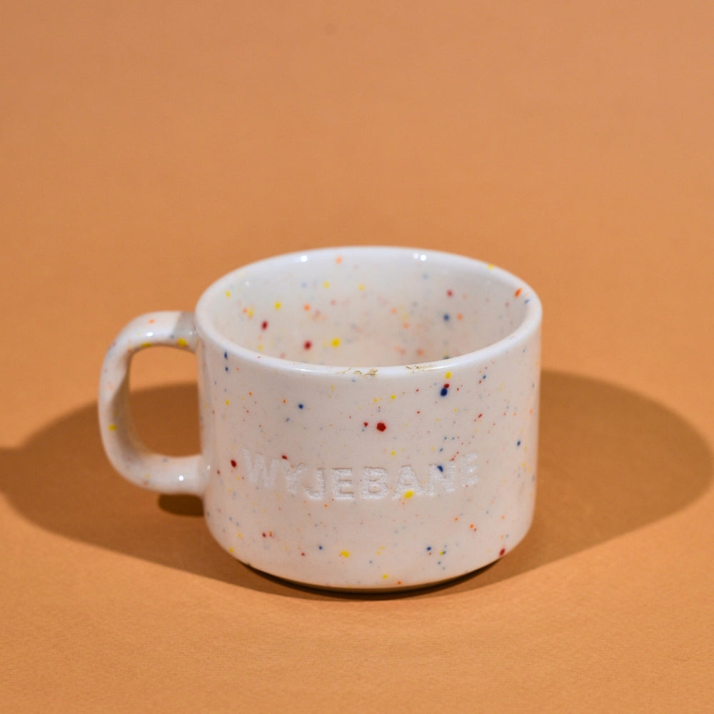 Porcelana w odcieniu beżowym z kolorowo nakrapianą powierzchnią.
